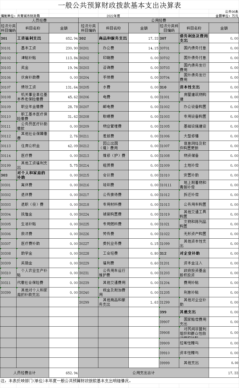 第二部分 2022年度部门决算表