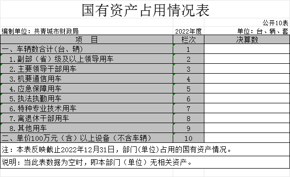 十、国有资产占用情况表