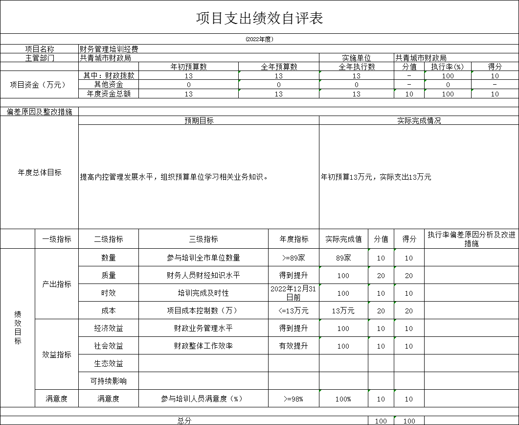 共青城市财政局绩效自评总报告