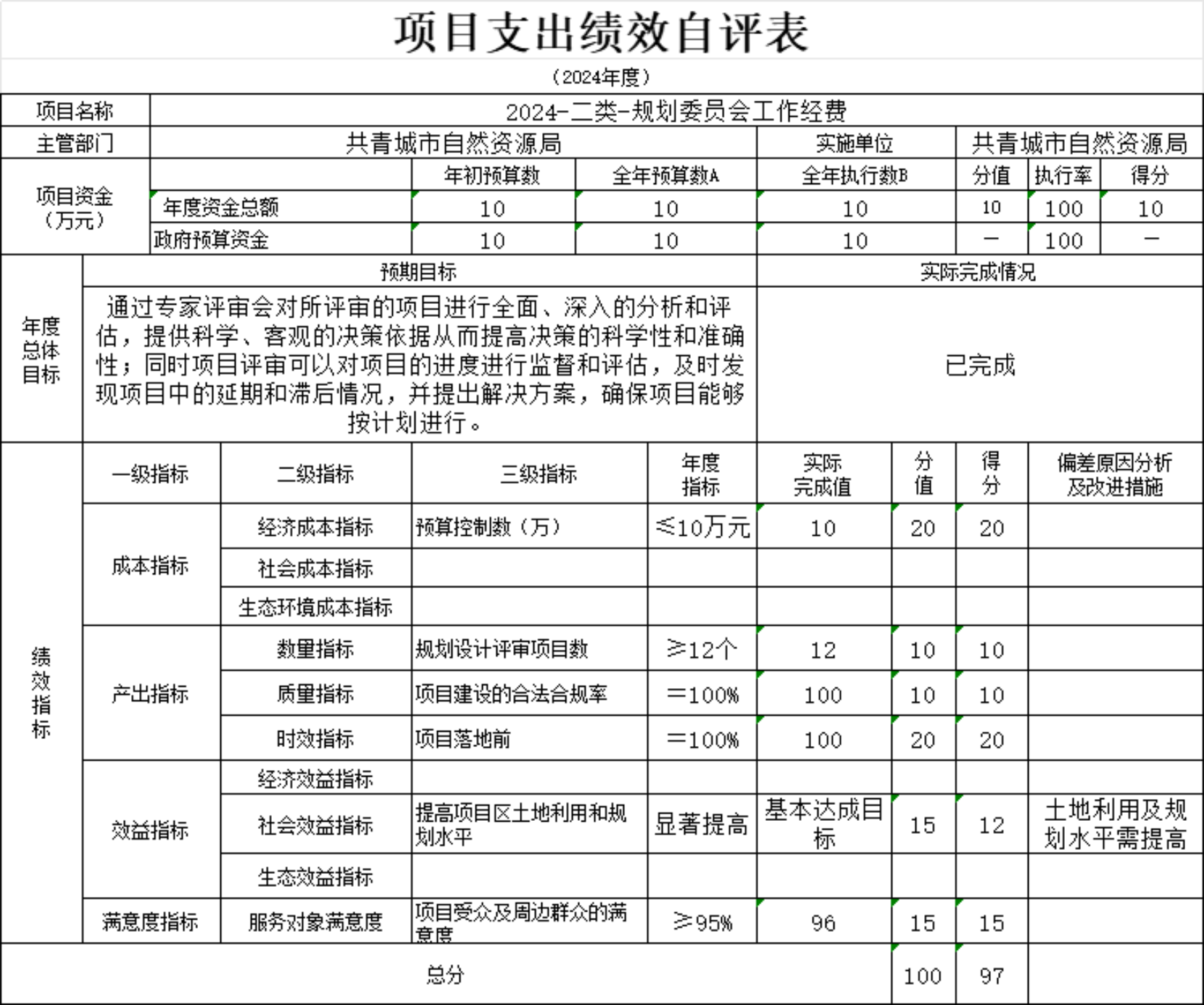 规划委员会工作经费自评情况