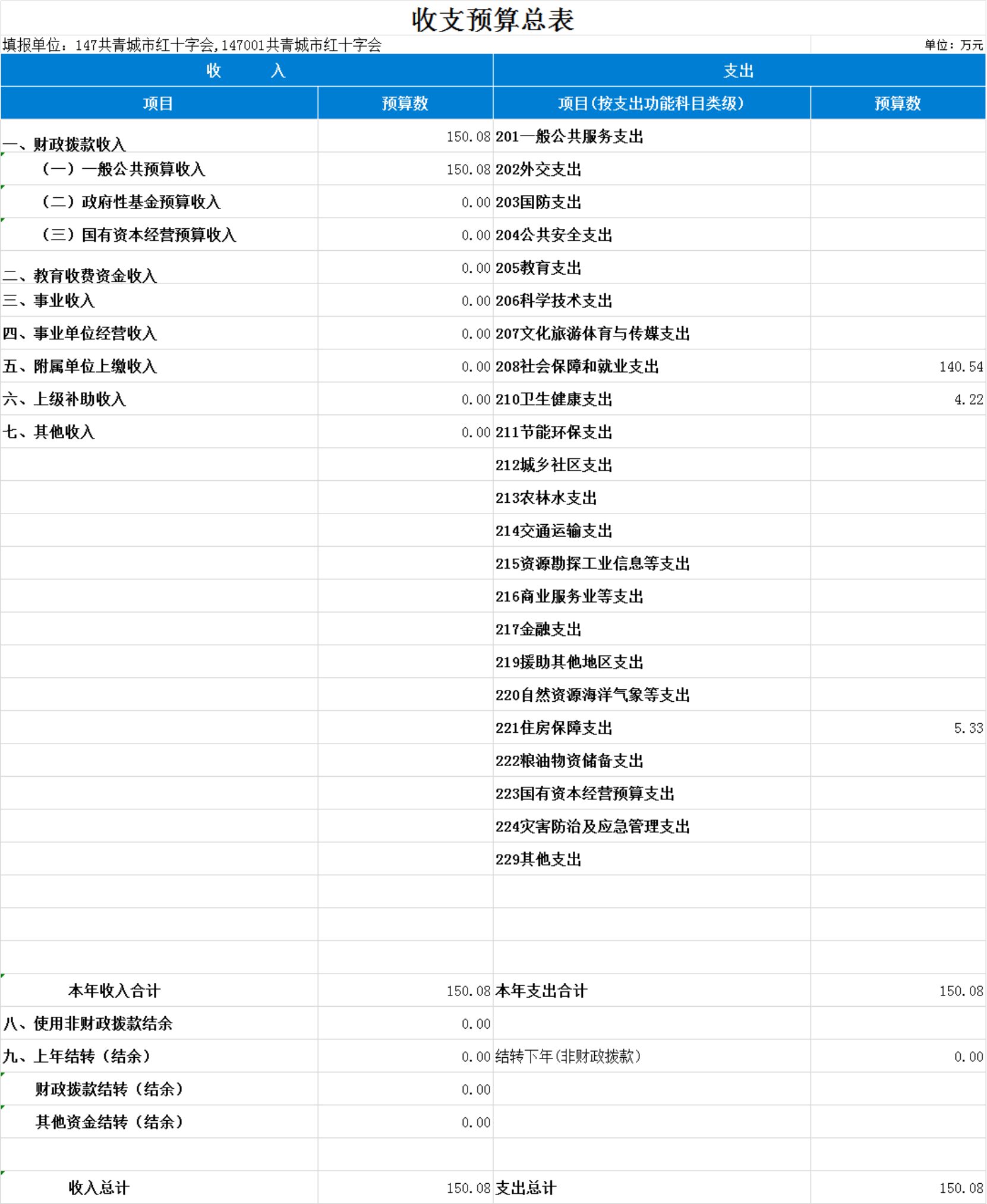 2026年共青城市红十字会收入预算总额为150.08万元,较上年预算安排增加55.11万元,增加的原因是26年新增2名在职人员。其中:财政拨款收入150.08万元,较上年预算安排增加55.11万,增加的原因是26年新增2名在职人员;教育收费资金收入0万元,较上年预算安排增加0.00万元,原因是无教育收费资金收入;事业收入0万元,较上年预算安排增加0万元,原因是无事业收入;事业单位经营收入0万元,较上年预算安排增加0 万元,原因是无事业单位经营收入;附属单位上缴收入0万元,较上年预算安排增加0万元,原因是无附属单位上缴收入;上级补助收入0万元,较上年预算安排增加0万,原因是无上级补助收入;其他收入0万元,较上年预算安排增加0万元,原因是无其他收入;使用非财政拨款结余0万元,较上年预算安排增加0万元,原因是无非财政拨款结余;上年结转结余0万元,较上年预算安排增加0万,原因是无上年结转结余。