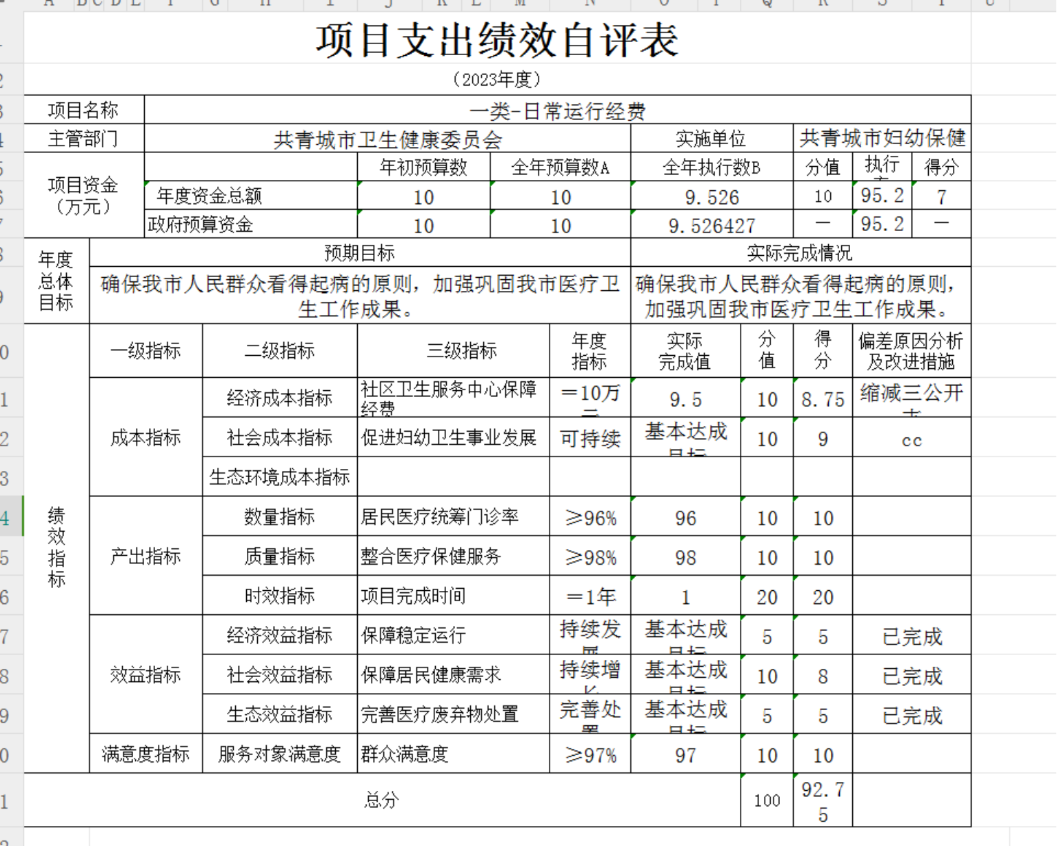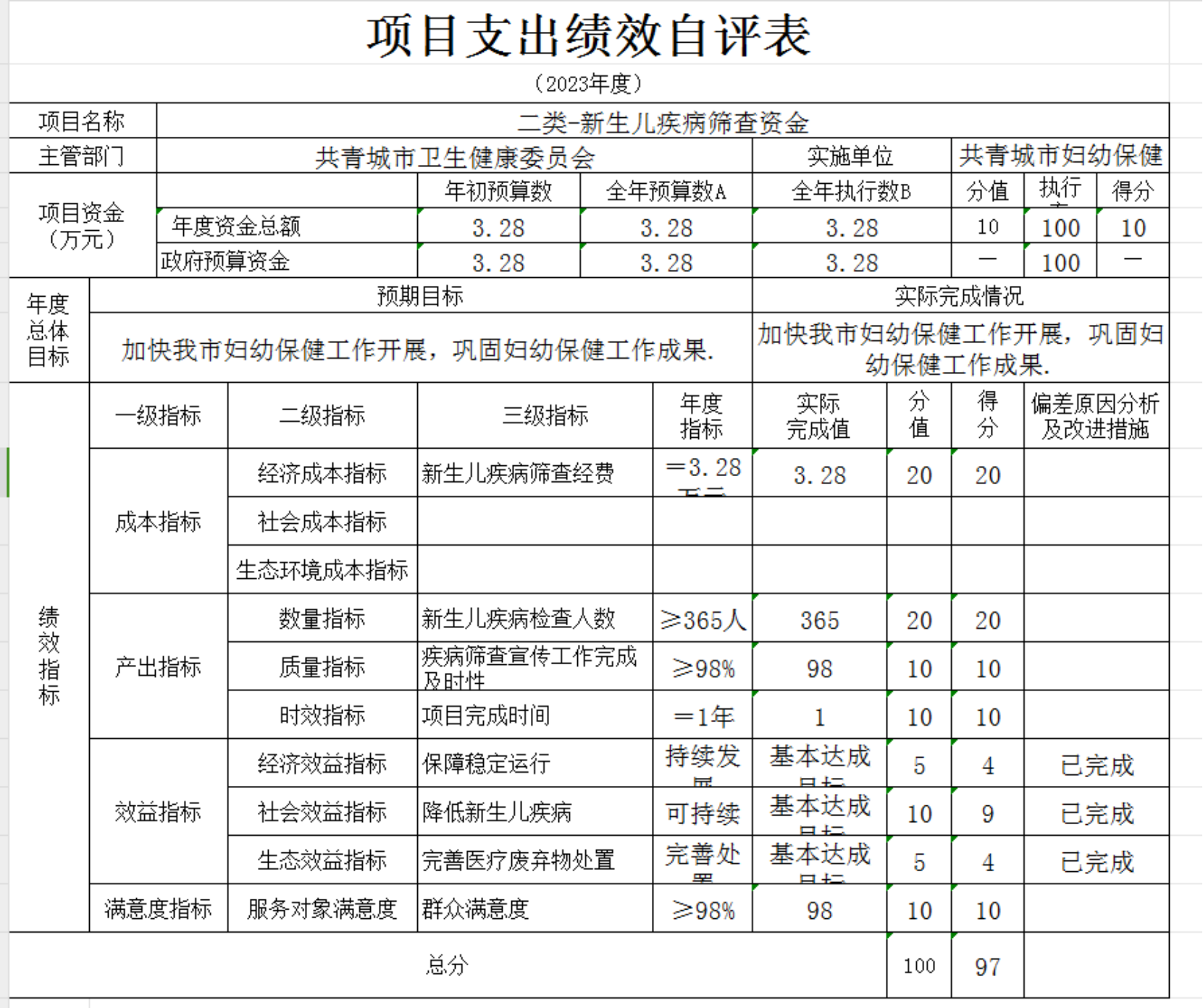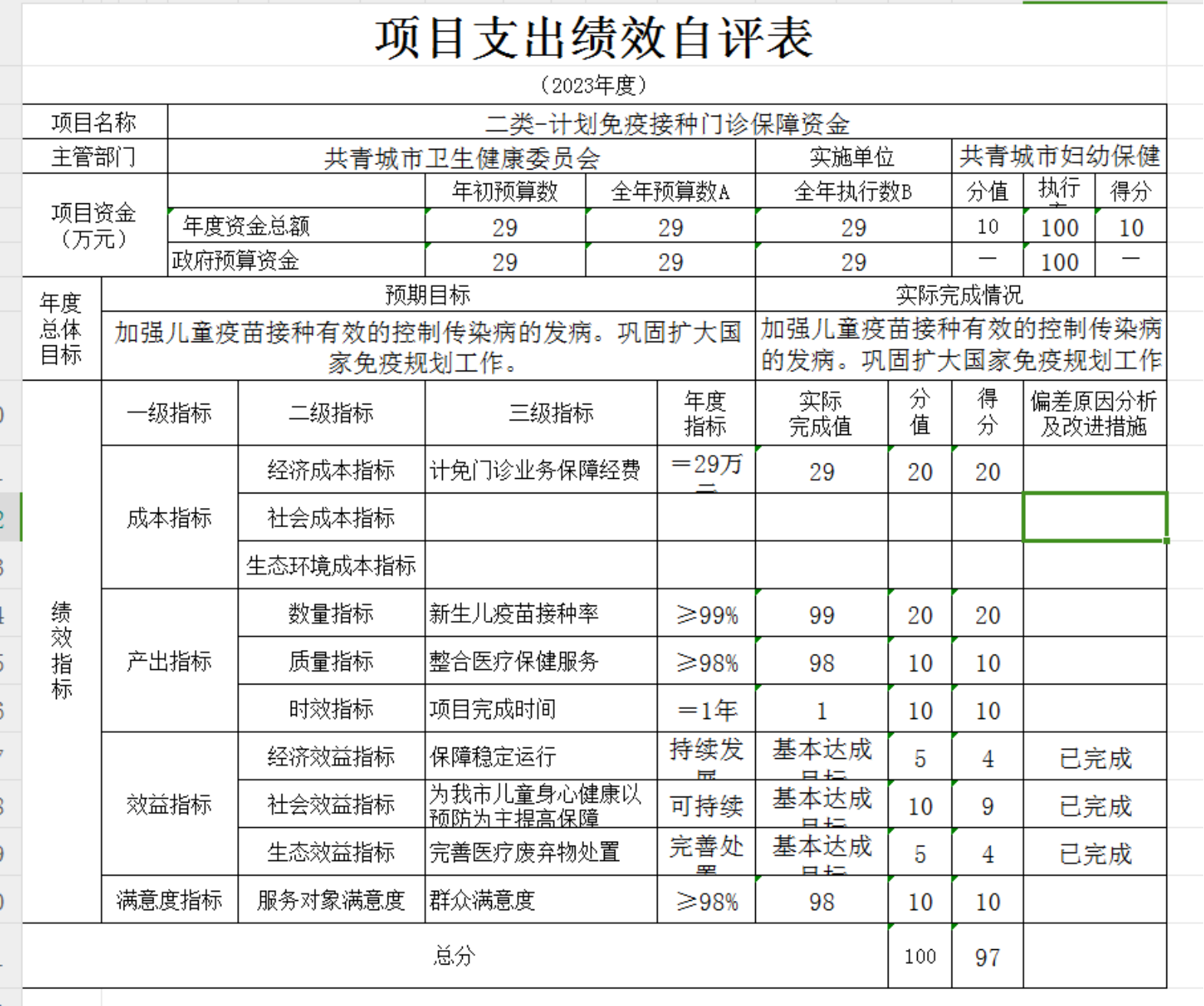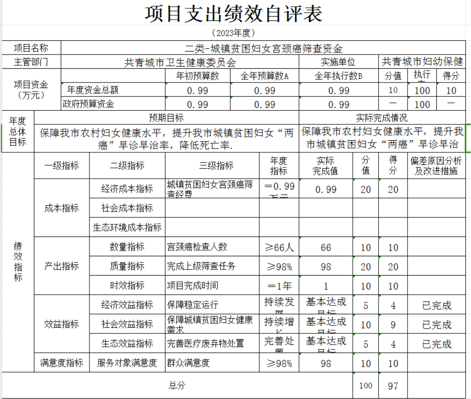 根据预算绩效管理要求,我单位组织对纳入2023年度部门预算范围的二级项目22个全面开展绩效自评,共涉及资金1028.90元,占项目支出总额的99.21%。其中,19个项目评价结果为“优”,3个项目评价结果为“良”,0个项目评价结果为“中”,0个项目评价结果为“差”。