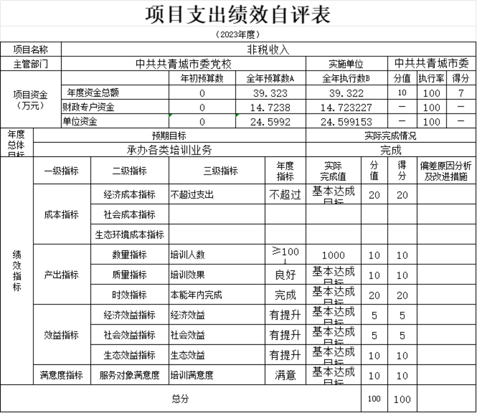 根据要求,现将“2023年度项目绩效自评总报告”(详见附件)及“党校干部教育培训费项目支出自评表”“非税收入项目支出自评”予以公开。
