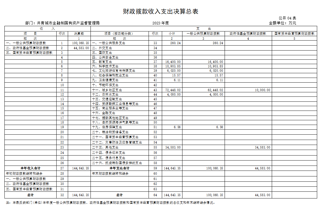 本年收入的具体构成:财政拨款收入144643.35万元,占100.00%;事业收入0万元,占0%;经营收入0万元,占0%;上级补助收入0万元,占0%;附属单位上缴收入0万元,占0%;其他收入1.20万元,占0%。