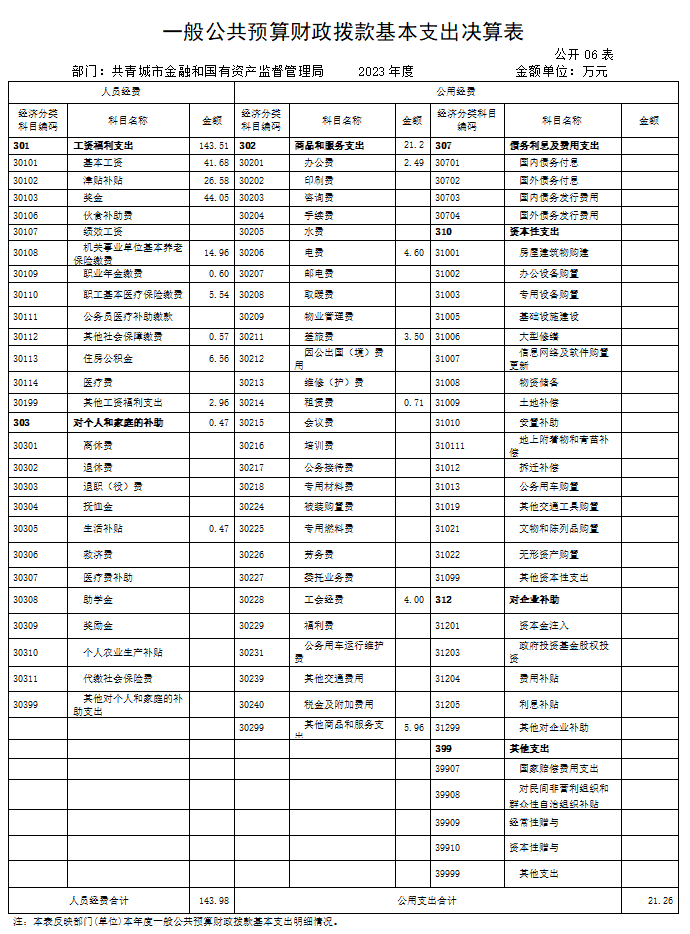 (一)一般公共服务支出:反映行政单位的基本支出。