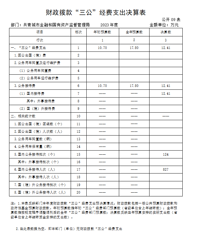 (一)“三公”经费:是指用财政拨款安排的因公出国(境)费、公务用车购置及运行维护费和公务接待费。其中,因公出国(境)费反映单位公务出国(境)的国际旅费、国外城市间交通费、住宿费、伙食费、培训费、公杂费等支出;公务用车购置及运行维护费反映单位公务用车车辆购置支出(含车辆购置税、牌照费),按规定保留的公务用车燃料费、维修费、过桥过路费、保险费、安全奖励费用等支出;公务接待费反映单位按规定开支的各类公务接待(含外宾接待)支出。