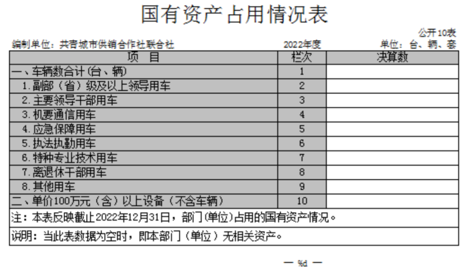 截至2022年12月31日,本部门国有资产占用情况见公开10表《国有资产占用情况表》。其中车辆中的其他用车主要是:无公务用车。