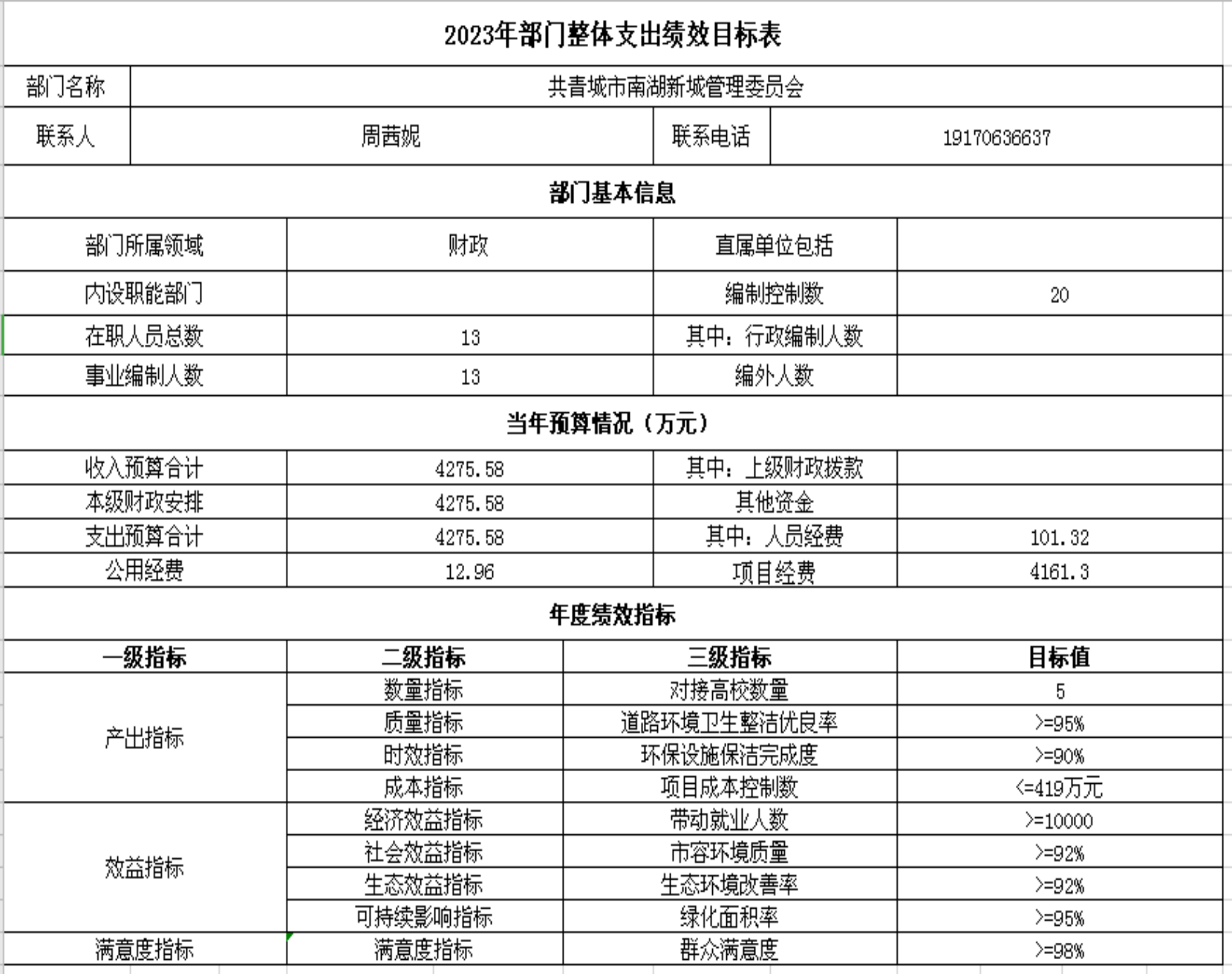 第三部分 共青城市南湖新城管理委员会2023年部门预算表