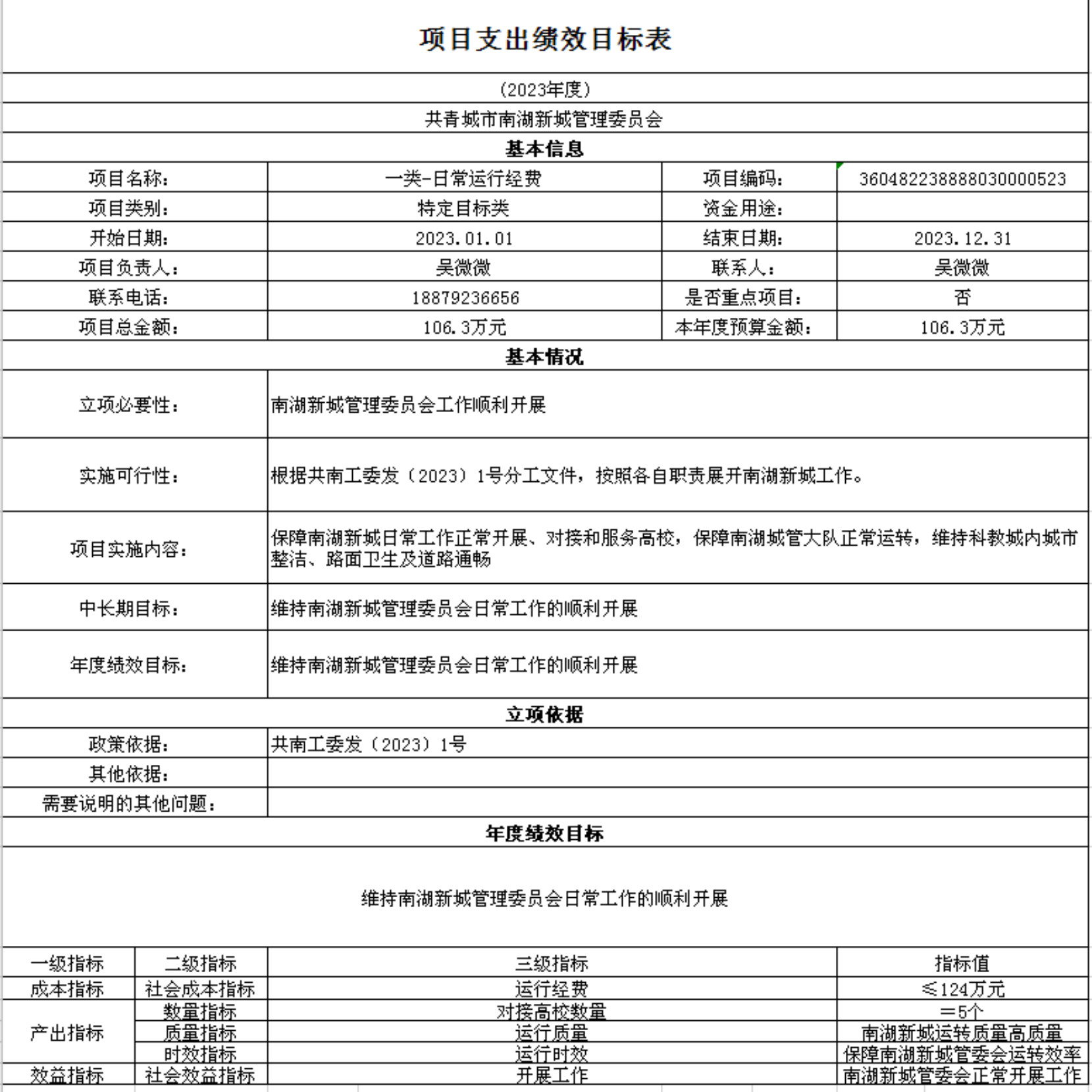 十一、《项目绩效目标表》