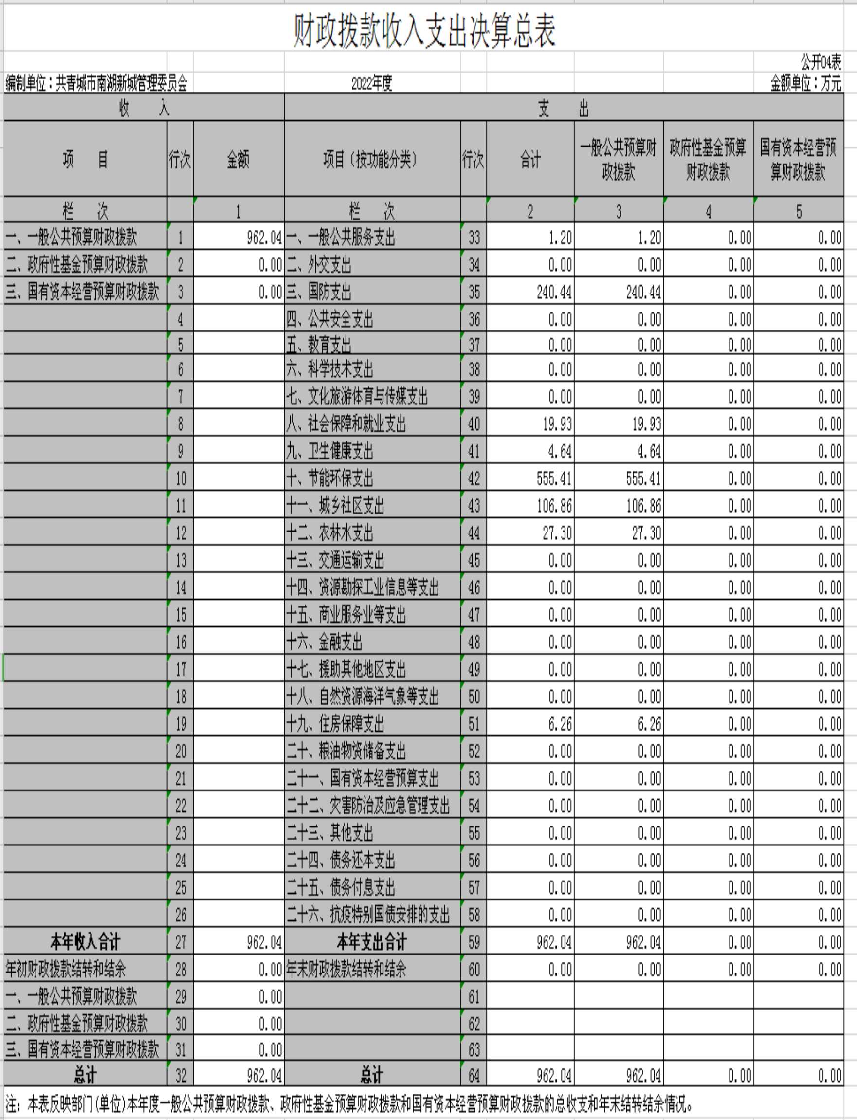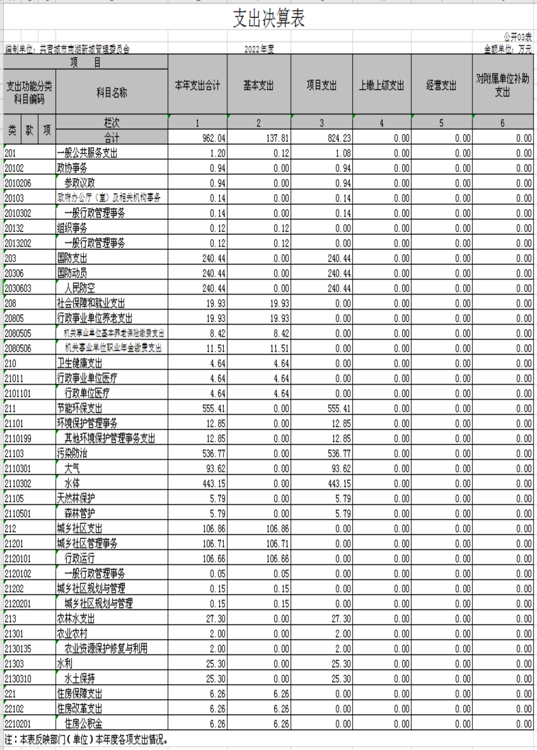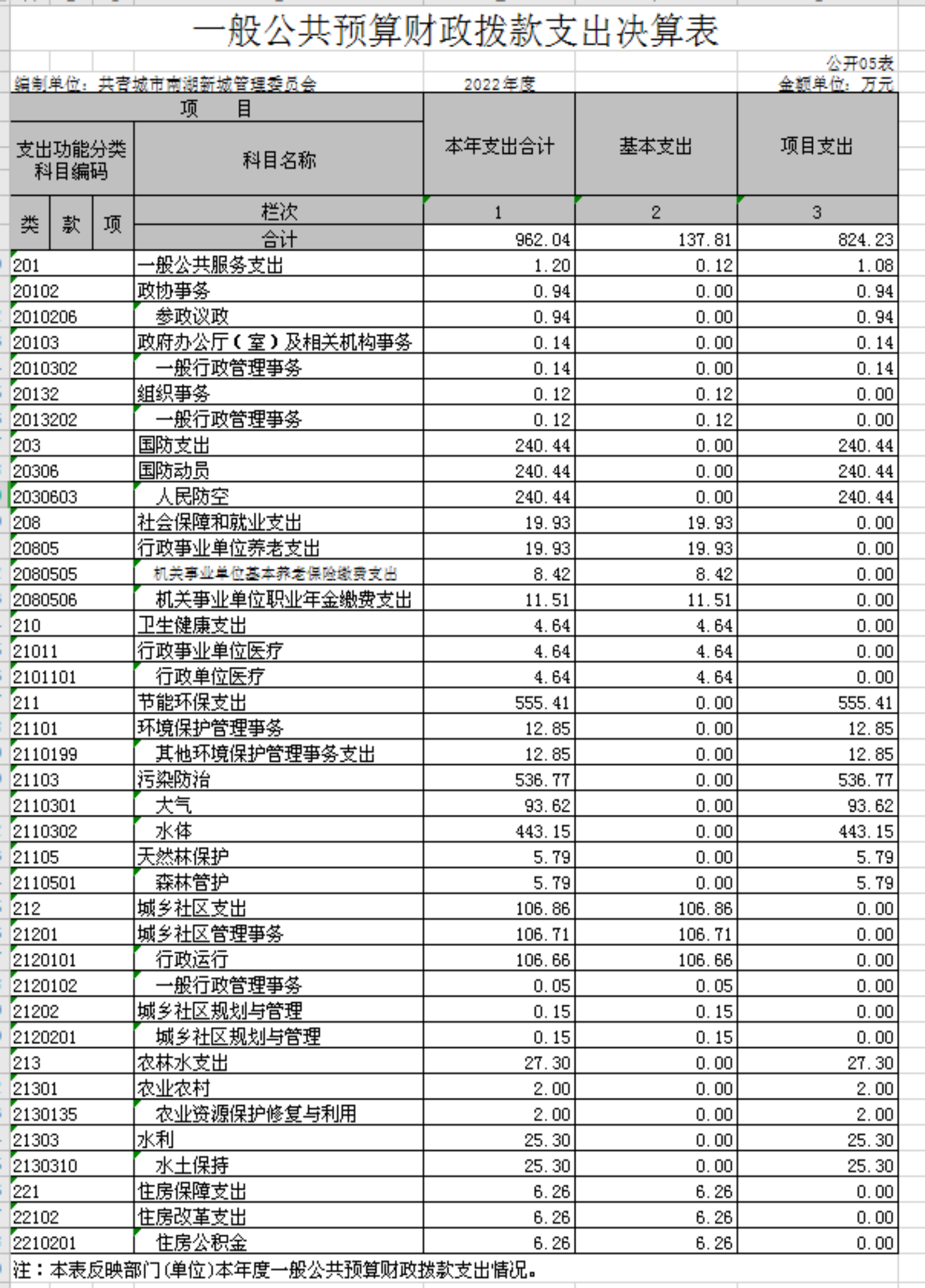 南湖新城管理委员会部门2022年度部门决算