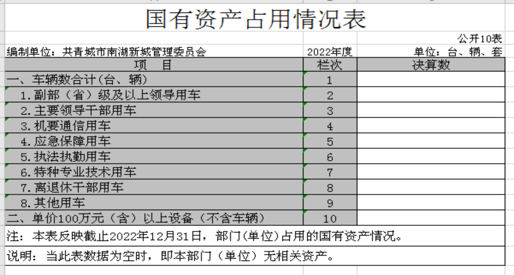 截至2022年12月31日,本部门国有资产占用情况见公开10表《国有资产占用情况表》。其中车辆中的其他用车主要是本单位无其他用车车辆。