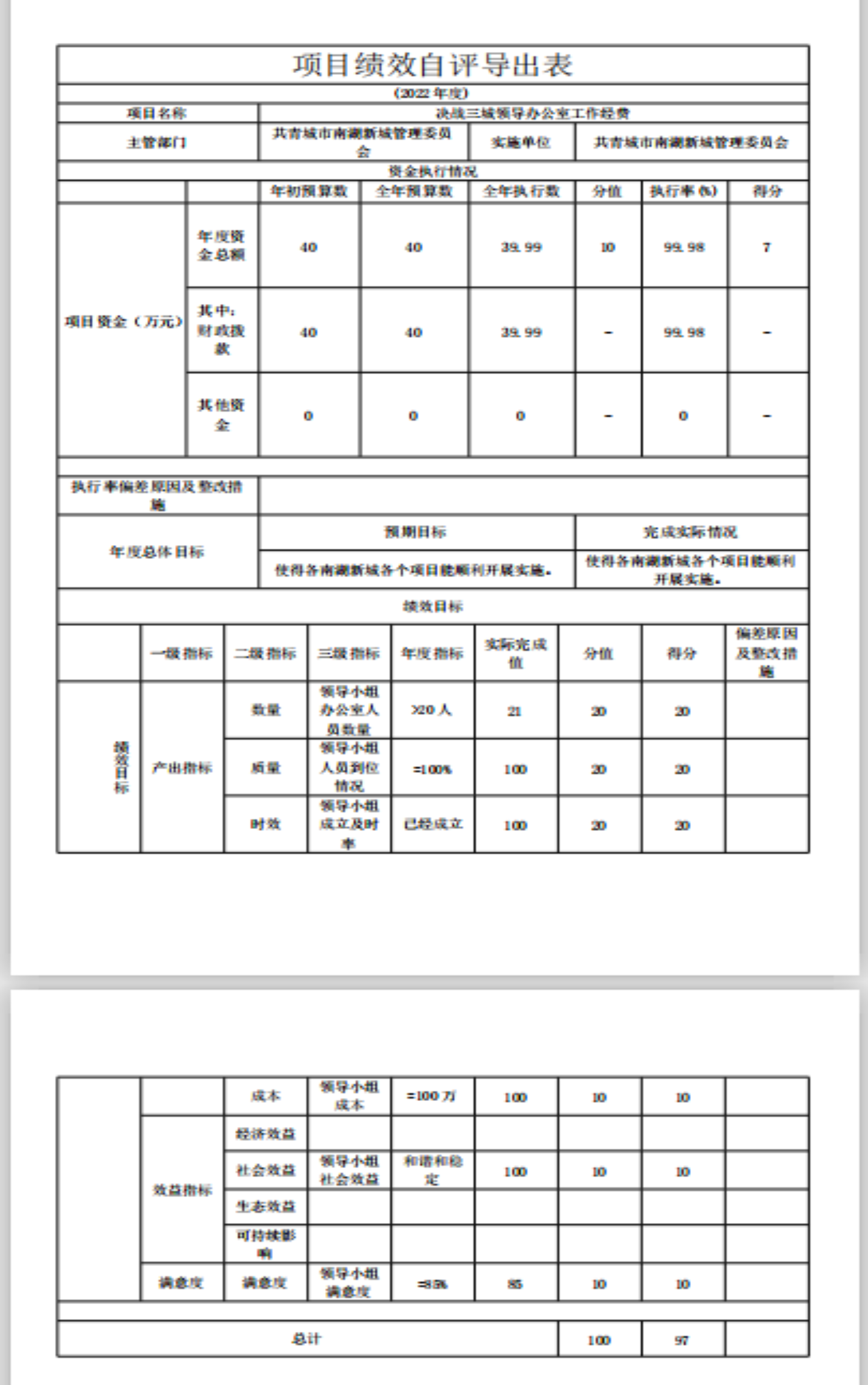 本部门公开“决战三城领导办公室工作经费”、“2022年绿化养护费”项目部门评价报告(见附件)。