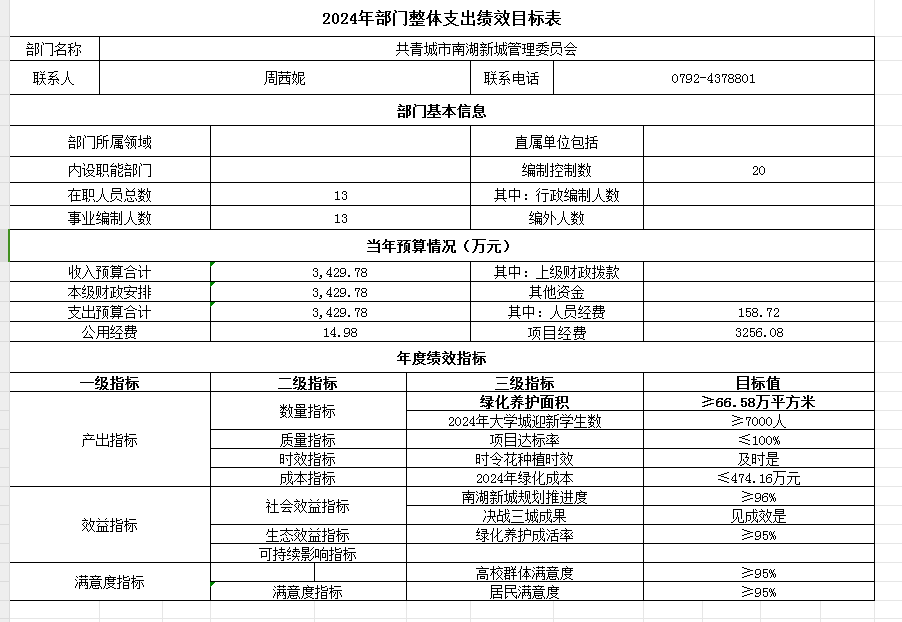 第三部分 共青城市南湖新城管理委员会2024年部门预算表