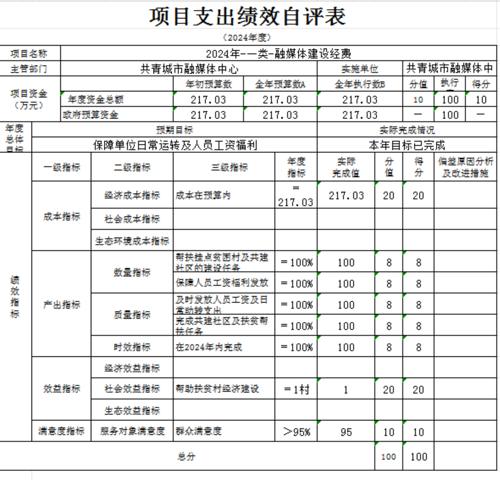共青城市融媒体中心(本级)“融媒体建设经费”“电视影响力提升经费” 等项目支出绩效自评结果如下: