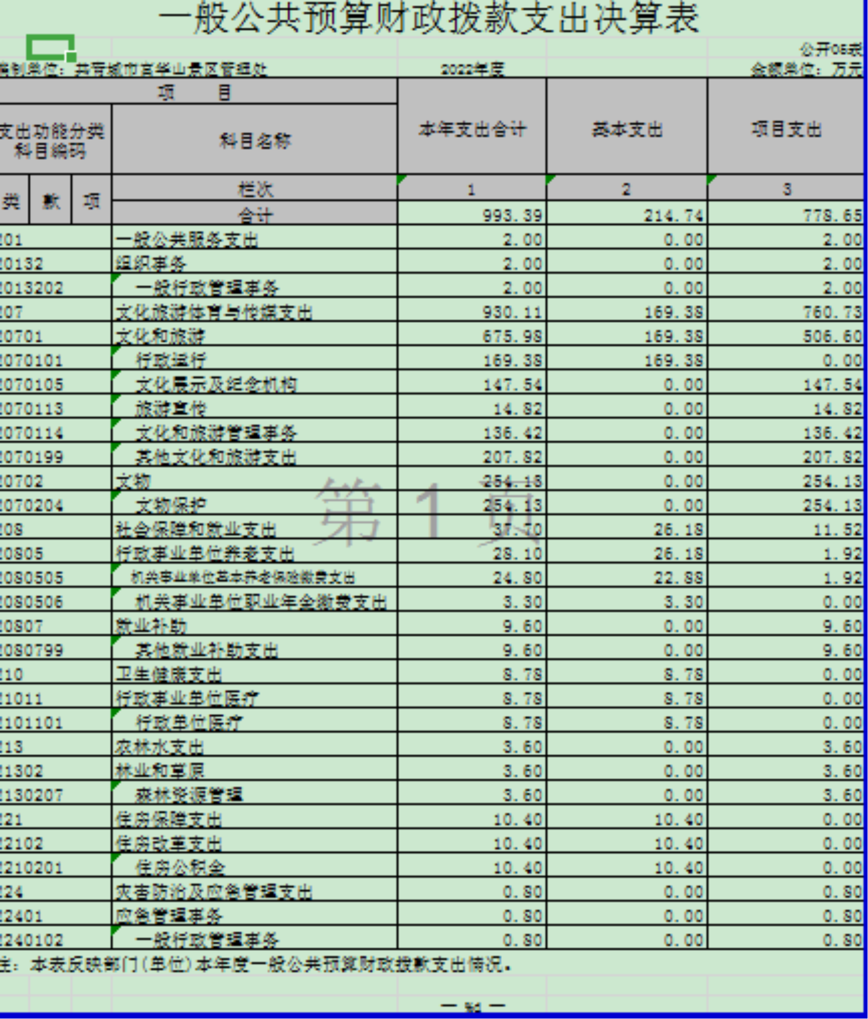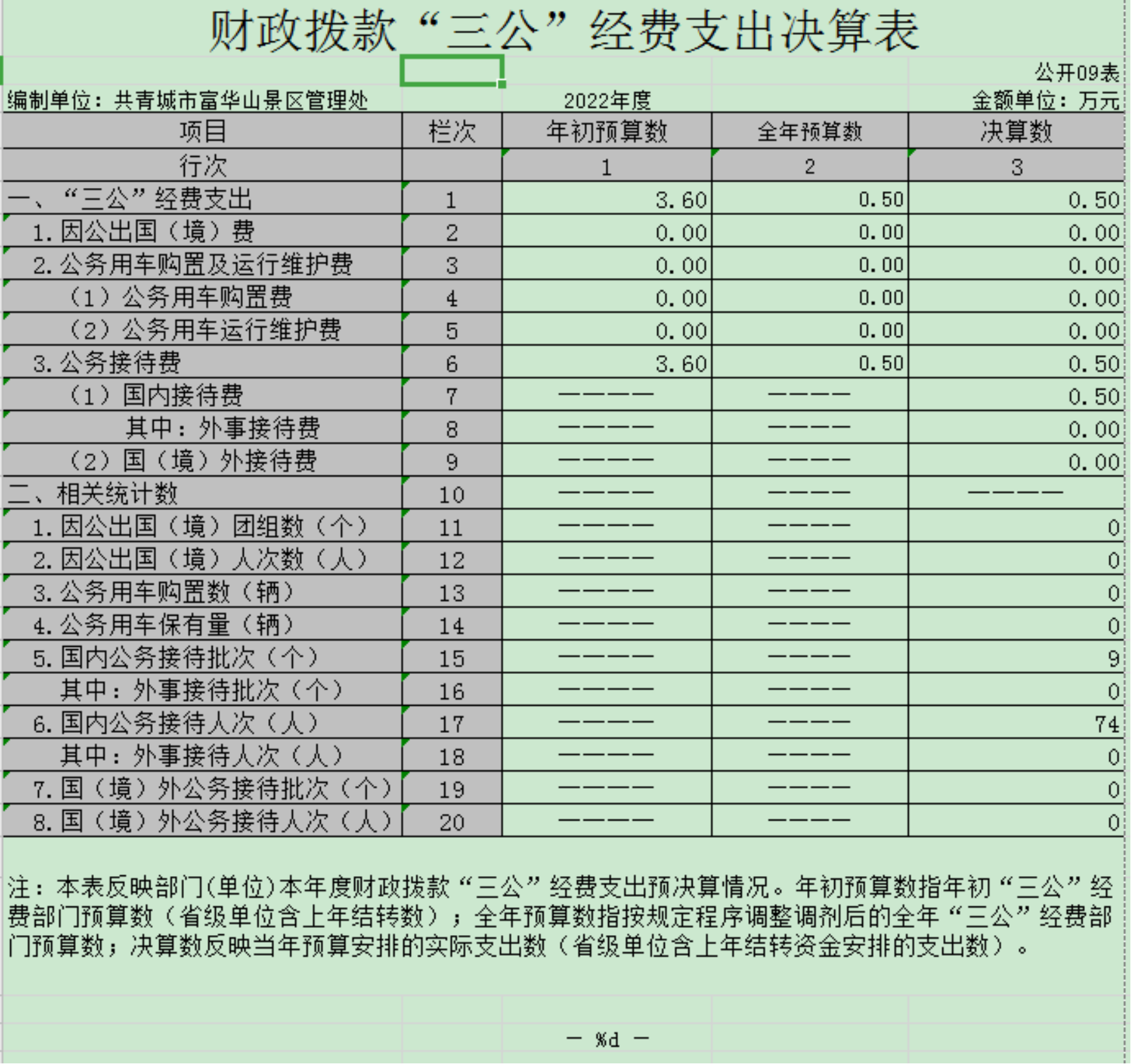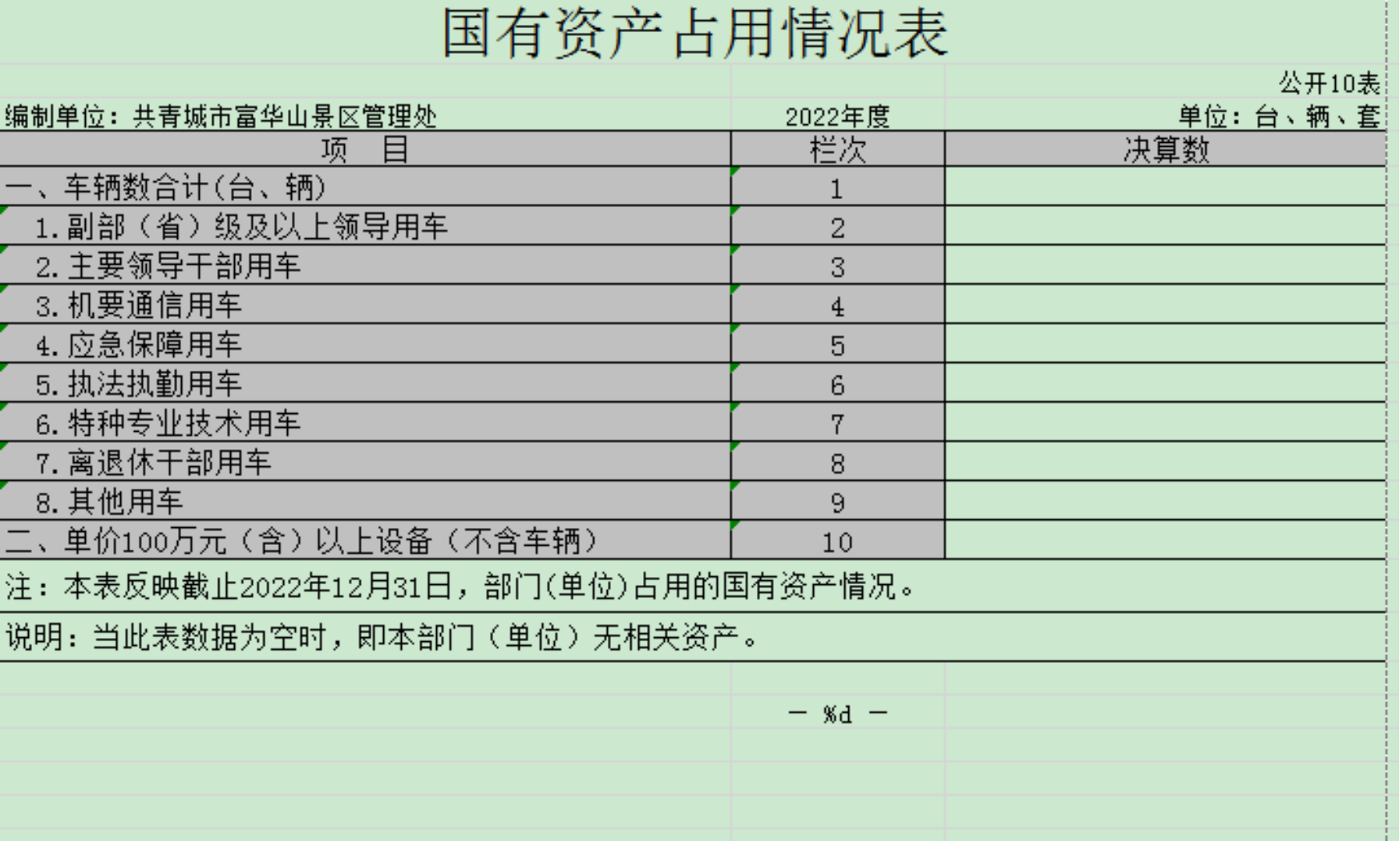 附件:《共青城市富华山景区管理处2022年部门决算公开表》共10张。