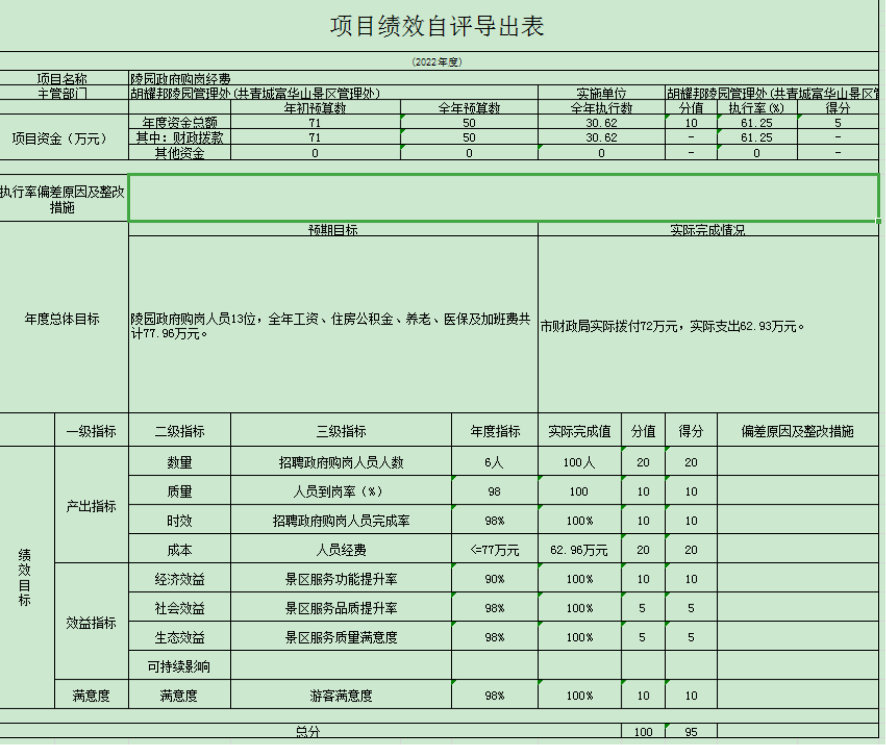 胡耀邦陵园管理处2022年整体支出绩效自评报告