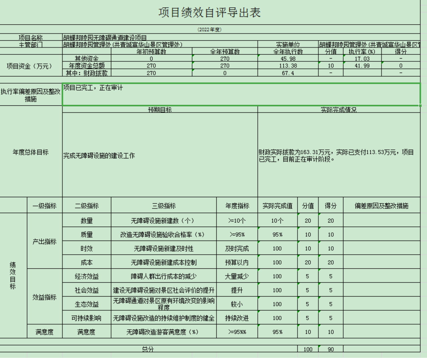 7.胡耀邦陵园无障碍通道建设项目年初预算资金270万元,财政安排资金163.31万元,实际支出113.53万元。