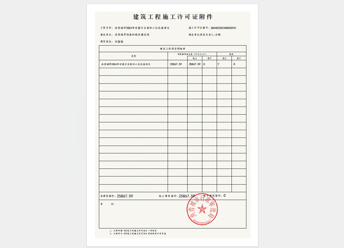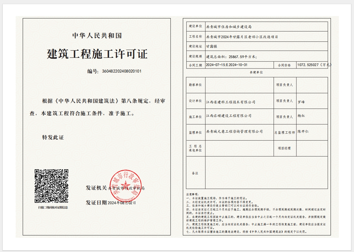 共青城市2024年甘露片区老旧小区改造项目施工许可证