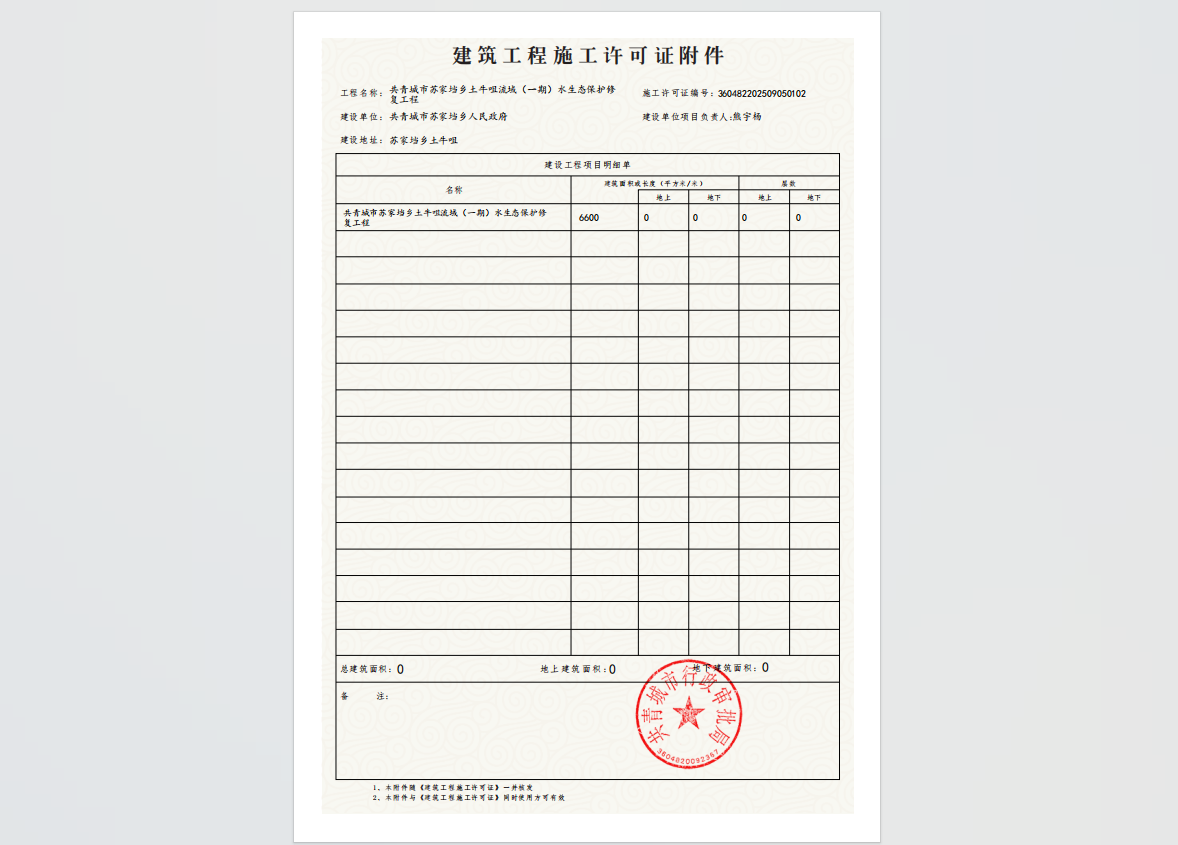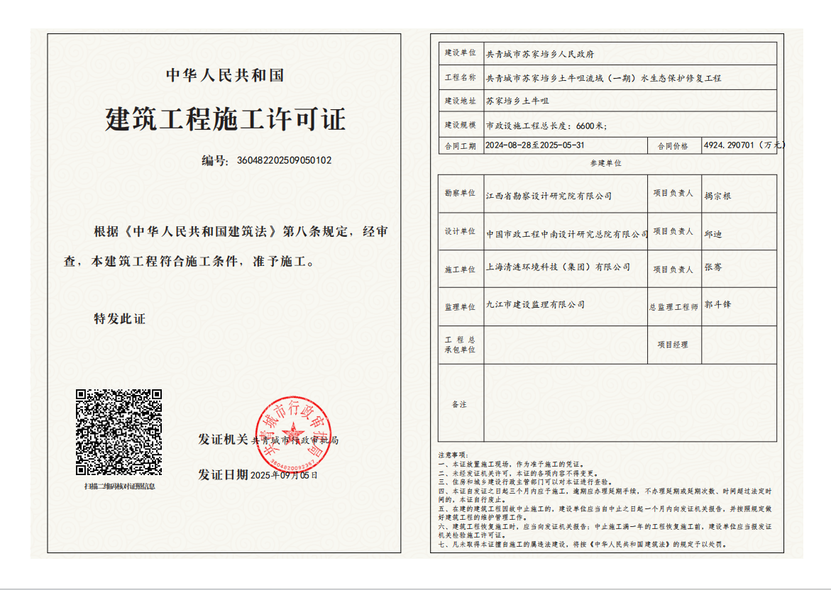 共青城市苏家垱乡土牛咀流域(一期)水生态保护修复工程施工许可证