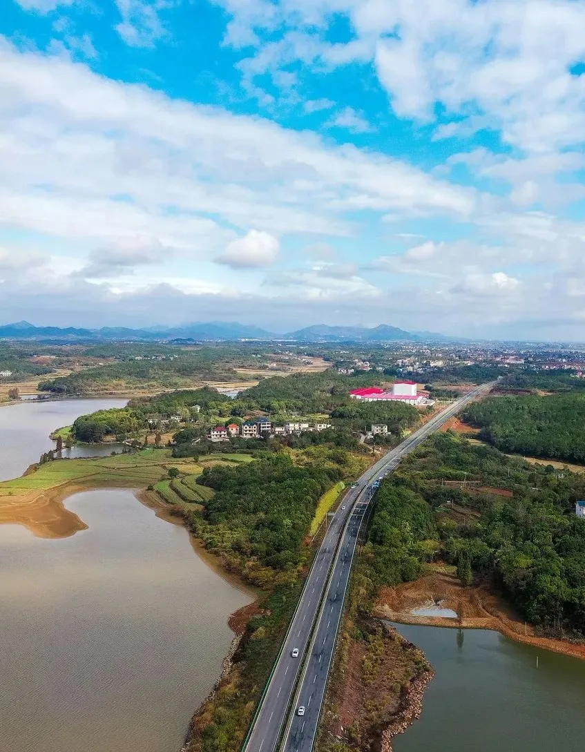 如今的共青城,农村公路环绕在绿水青山间、穿越于阡陌纵横中,串点成线、串线成网,形成四通八达的乡村公路网络,将农村与城市连成一片,绘就出一幅乡村振兴的美丽新画卷。