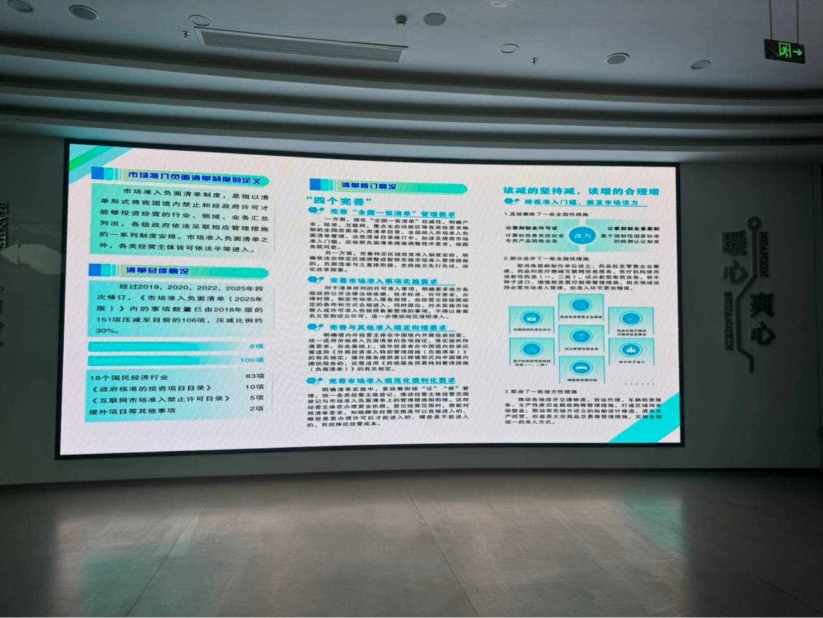 利用政务服务大厅的电子显示屏,循环播放市场准入负面清单内容、解读手册和“全国一张清单”权威宣传标语,增强宣传的覆盖面和持续性。