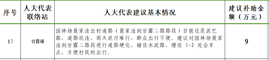 人大代表建议办理专项资金项目汇总表