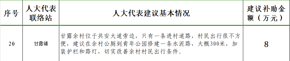 人大代表建议办理专项资金项目汇总表