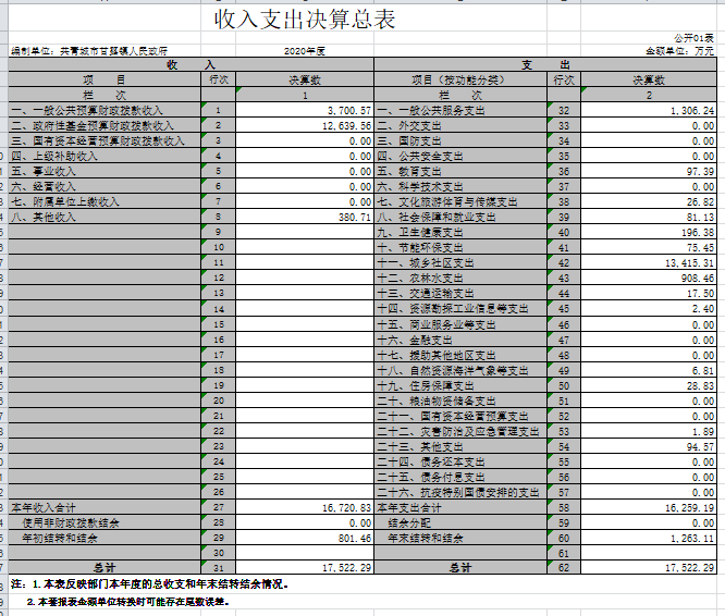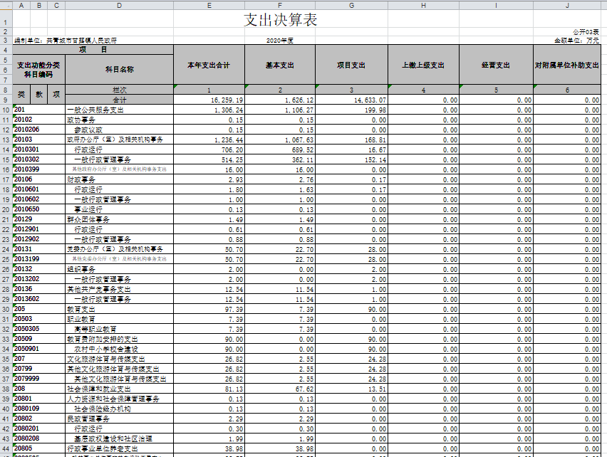 第二部分 2020年度部门决算表