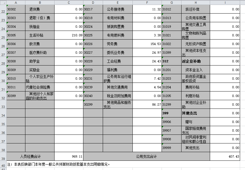 (一)行政运行:反映行政单位(包括参公单位)的基本支出。