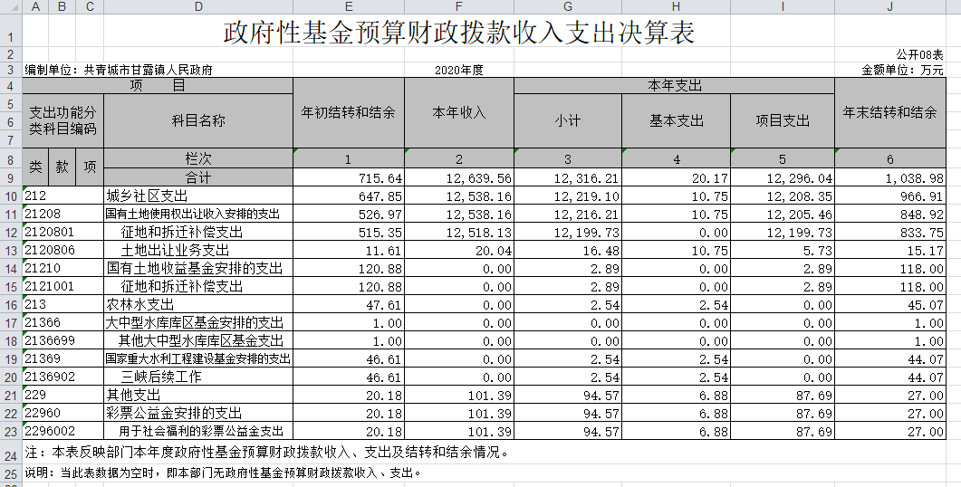 共青城市甘露镇人民政府2020年度部门决算
