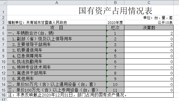 截止2020年12月31日,本部门(单位)国有资产占用情况见公开10表《国有资产占用情况表》。本部门共有车辆2辆,其中,主要领导干部用车2辆,无其他用车。
