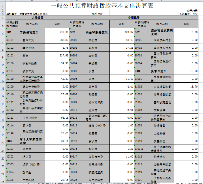 2021年我镇保障了机关46名在编在岗人员部分住房公积金缴纳,16名临时聘用人员全年福利,食堂开伙12个月,9个职能部门的正常运转。