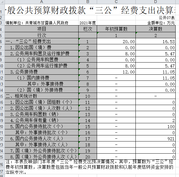 本部门2021年度一般公共预算财政拨款“三公”经费支出年初预算数为20万元,决算数为16.53万元,完成预算的82.65%,决算数较2020年减少2.21万元,下降11.79%,其中:
