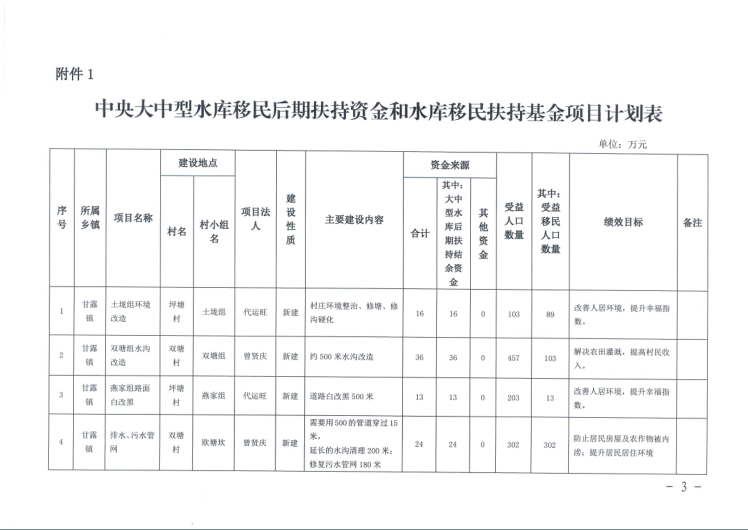 2025年度共青城市甘露镇大中型水库移民后期扶持项目计划汇总表