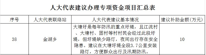 金湖乡人大民生项目实施计划表(38号)