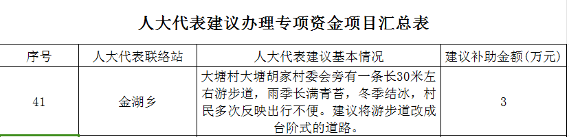 金湖乡人大民生项目实施计划表(41号)