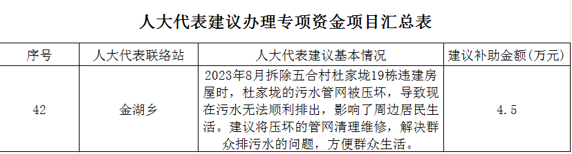 金湖乡人大民生项目实施计划表(42号)