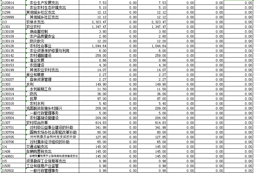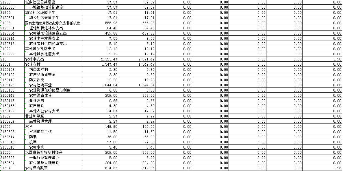 (八)农林水支出年初预算数为91.2万元,决算数为2321.49万元,完成年初预算的2545%,主要原因是:本年度项目支出增加,年中追加农林水支出经费。