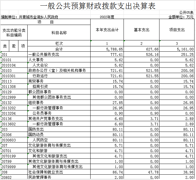 纳入本套部门决算汇编范围的单位共1个,包括:共青城市金湖乡人民政府。内设机构:党政办公室、社会事务办公室、社会治理办公室、财政经济发展办公室、农业农村办公室、便民服务中心、综合行政执法大队。