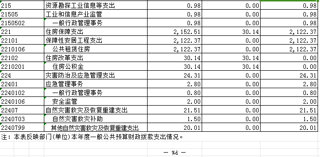 (十二)灾害防治及应急管理支出年初预算数为0万元,决算数为24.31万元,完成年初预算的100%,主要原因是:年中追加灾害防治及应急管理支出经费。