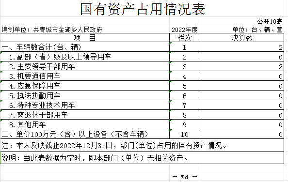 截至2022年12月31日,本部门国有资产占用情况见公开10表《国有资产占用情况表》。其中车辆中的主要领导干部用车为公务用车,无其他用车。