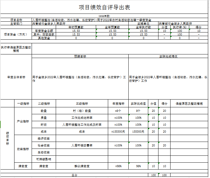 作为全过程预算绩效管理的落脚点,我乡高度重视部门的自评结果,及时整理、汇总、分析、反馈绩效自评结果,并将其作为改进预算管理和以后年度预算安排的重要依据。