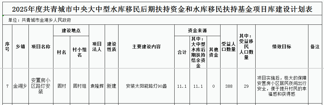2025年度共青城市中央大中型水库移民后期扶持资金和水库移民扶持基金项目库建设计划表(固村固村组)
