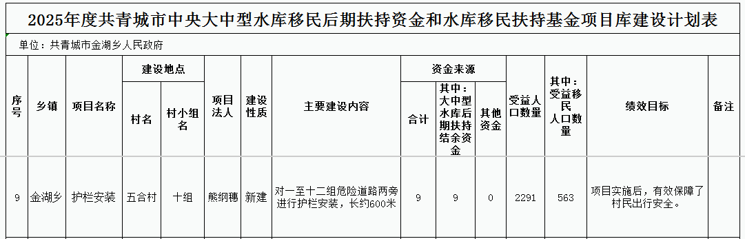 2025年度共青城市中央大中型水库移民后期扶持资金和水库移民扶持基金项目库建设计划表(五合村十组)