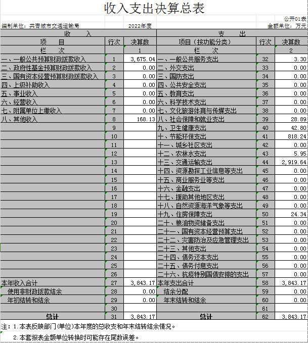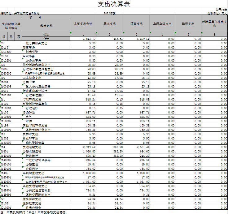 本部门2022年度支出总计3843.17万元,其中本年支出合计3843.17万元,较2021年减少3830.11万元,下降49.9%,主要原因是:工程款类支出较上年减少;年末结转和结余0万元,与2021年持平。