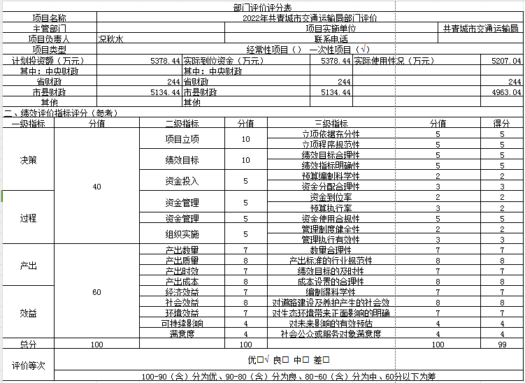 组织对“日常运行经费”、“治限治超执法工作经费”、“农村公路养护”、“公交车运营补助”等21个项目开展了部门评价,涉及一般公共预算支出3409.64万元,政府性基金预算支出0万元,国有资本预算支出0万元。从评价情况来看,部门运转规范,资金使用合理,确保了项目资金按项目进度支付。