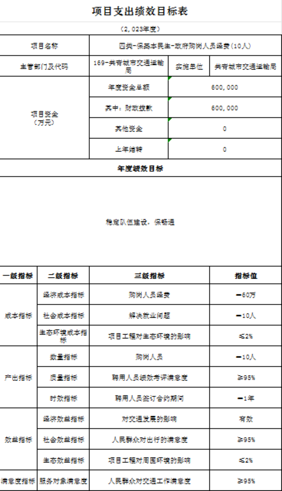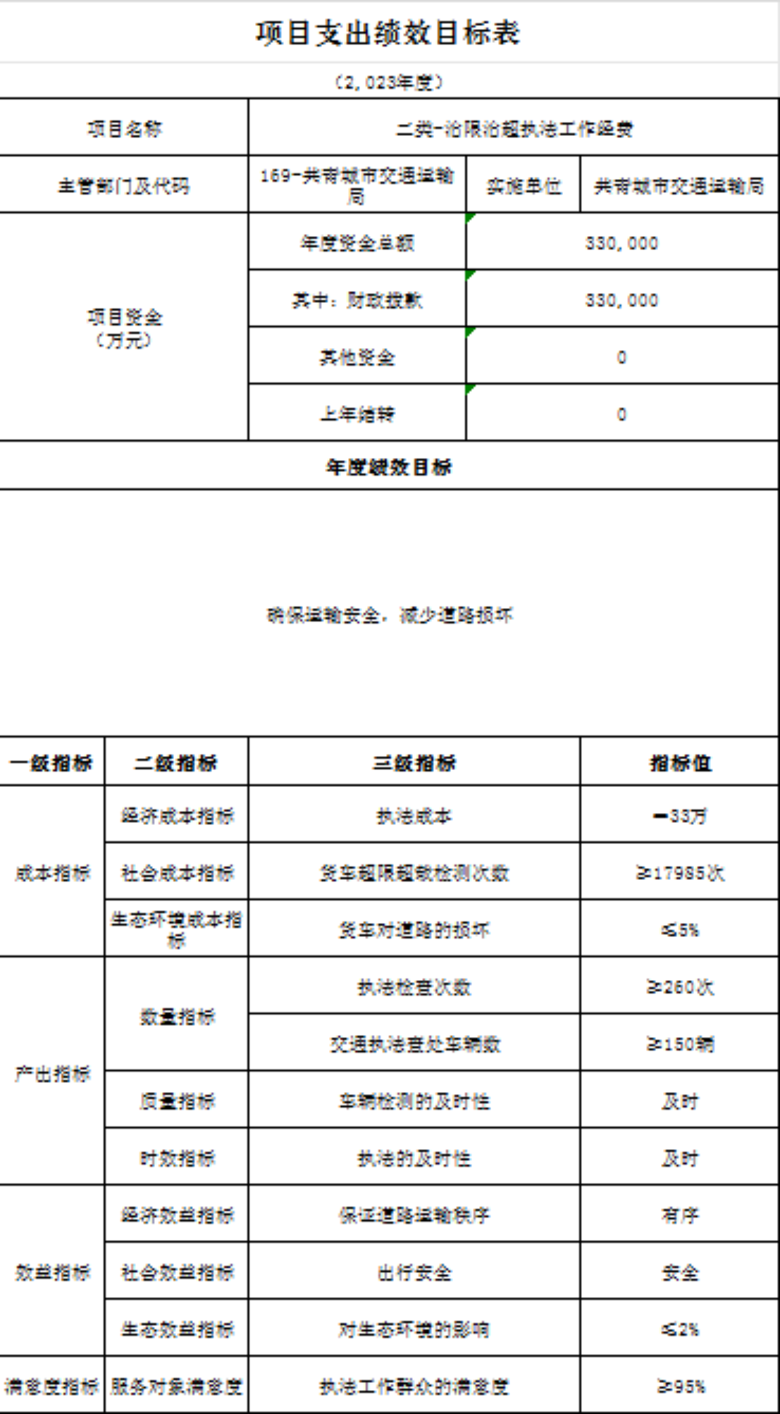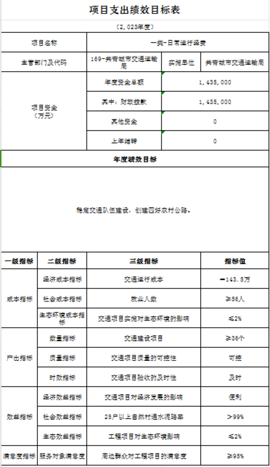 组织开展部门整体支出绩效评价,涉及一般公共预算支出7388.90万元,政府性基金预算支出0万元,评价结果为“ 优 ”。从评价情况看,履职完成情况:全年完成公路建设总投资3.2亿元,窄路面扩宽项目完成5公里,生命安全防护工程完成20公里,完成危桥改造3座,完成资源路产业路10.2公里。1.苏青公路路灯安装加班加点提前完工;2.省重点项目G532三期已完成整个项目75%;3.黄金线公路已竣工并交付使用;4.南新公路项目有力推进,江益集镇段改造完成;5.关斜线、泽泉集镇段改造已完工并交付使用;6.治超治限检测站已竣工,春节前后可入驻并投入使用;7.江益镇红星圩堤路面拓宽工程抢抓晴好天气可于年底前完成全部土方工程;8.综合场至金湖项目实干加巧干,项目自4月底开工以来已完成土方工程并铺设混凝土里面,预计可提前交付使用;9.金鸡桥危桥改造已于5月底主体完工,危桥改造完成率达100%;11.苏家垱乡境内道路改造提升,工程快速推进,土牛-共青县道升级改造工程、炳章公路已完工正在进行后续扫尾工作,9.8公里的道路安防工程已全面完成。履职效果情况:最大程度的保障了人民群众的出行安全以及出行便利,群众满意度高。