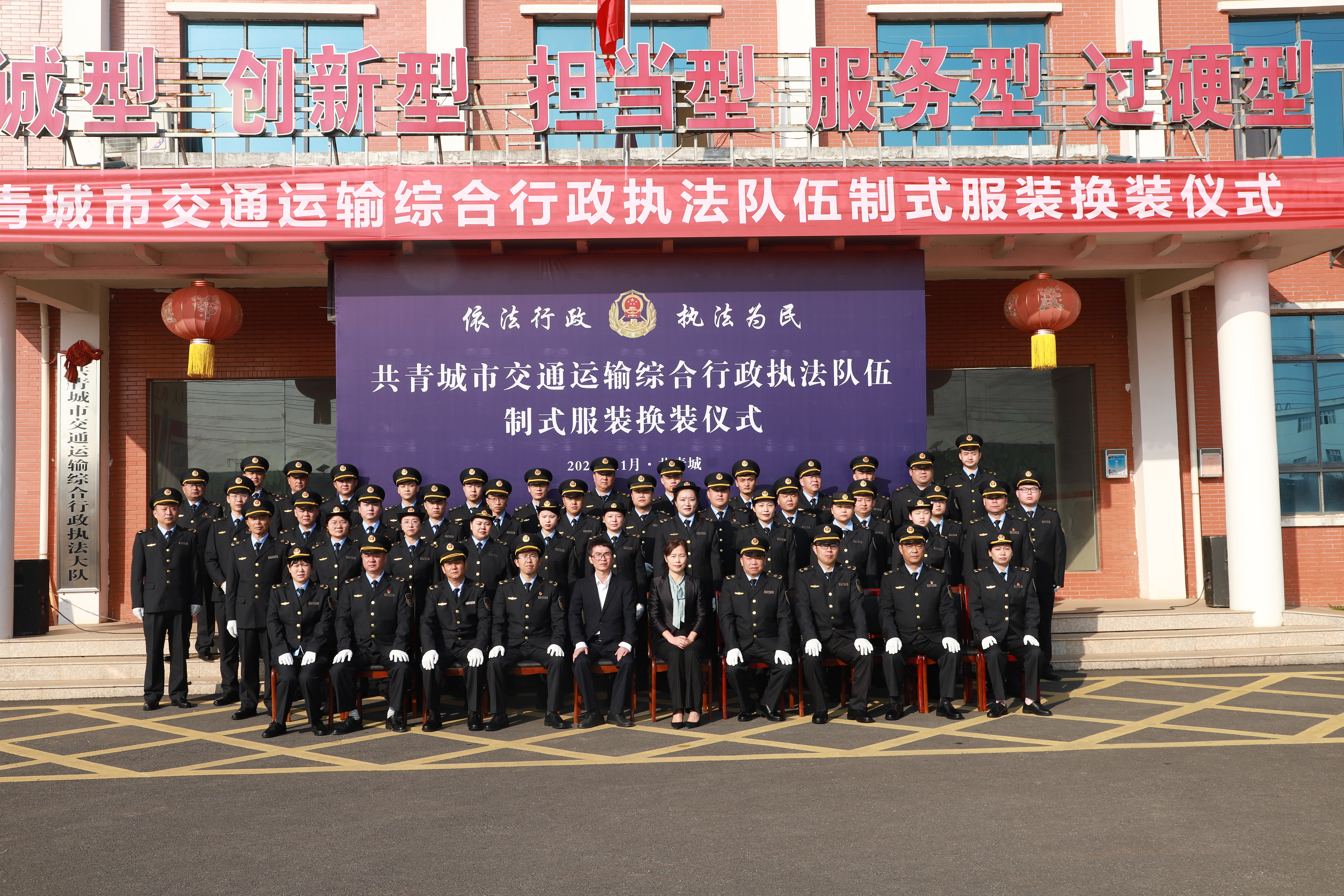 2022年11月7日,共青城市交通运输综合执法大队隆重举行制式服装换装仪式,这标志着共青城市交通运输综合执法队伍正规化、专业化、法治化建设迈上了新的台阶。以此次换装仪式为契机,全市深入开展交通运输综合执法队伍作风建设专项行动,树立新形象,展现新作为,实现新突破,切实当好交通运输市场公平竞争的维护者。