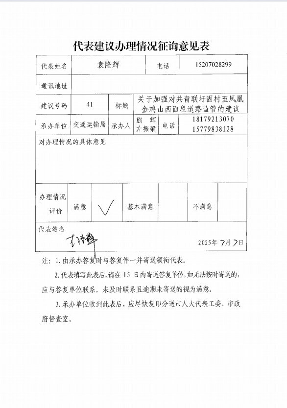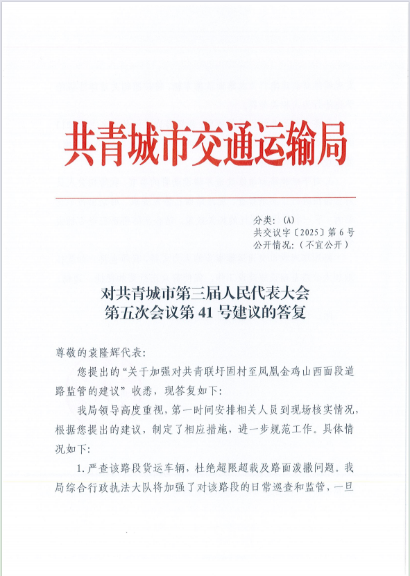 对共青城市第三届人民代表大会第五次会议第41号建议的答复