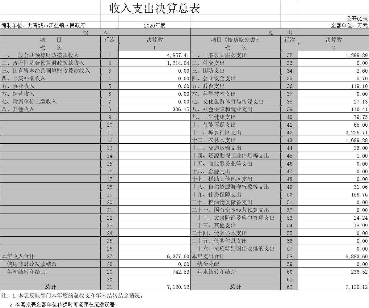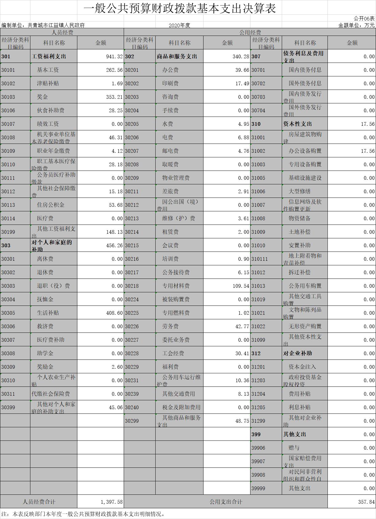 纳入本套部门决算汇编范围的单位共1个,包括:江益镇人民政府。本部门2020年年末实有人数41人,其中在职人员41人,离休人员0人,退休人员22人;年末其他人员0人;年末学生人数0人。